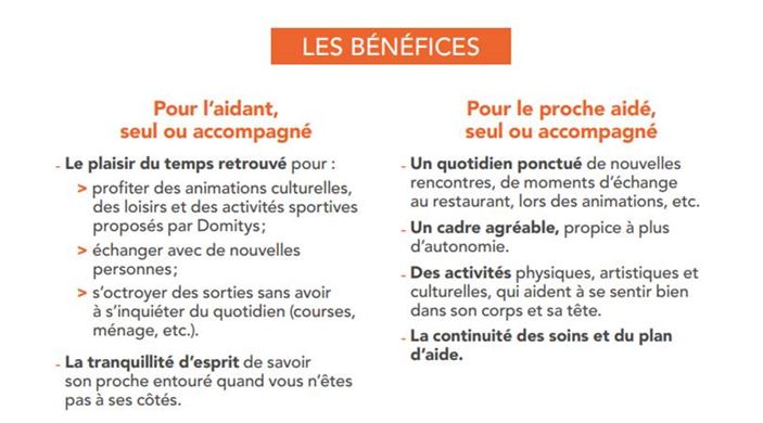 Congé de proche aidant, développement des plateformes de répit, campagnes de sensibilisation : la Journée nationale des aidants est l'occasion de rappeler les nombreuses avancées récentes en faveur des aidants. Parallèlement, les acteurs privés agissent concrètement pour offrir aux aidants un répit et une pause bien mérités. DOMITYS est une solution possible pour les aidants, mais aussi pour l'aidé. Ils peuvent venir à 2. En ce sens, le Groupe vient en aide à ces derniers à travers de nombreuses initiatives qui font bouger les territoires.