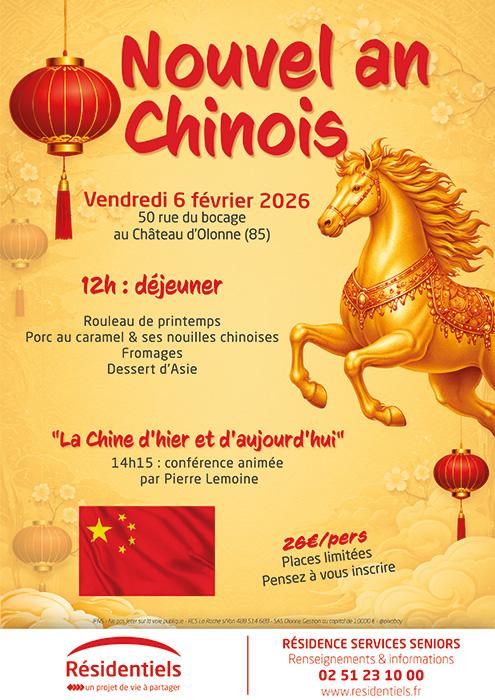 Vendredi 6 février, nous partagerons un déjeuner aux saveurs de la Chine, suivi d'une conférence intitulée « La Chine d'hier et d'aujourd'hui ».